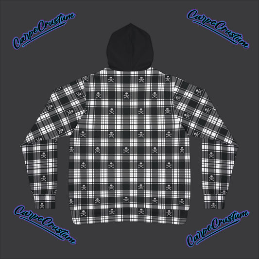 Black & White Flannel Plaid Skull and Crossbones All Over Print Hoodie
