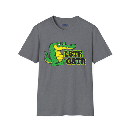 L8TR G8TR Tee - Retro Gator Graphic Shirt with Text Message Vibes