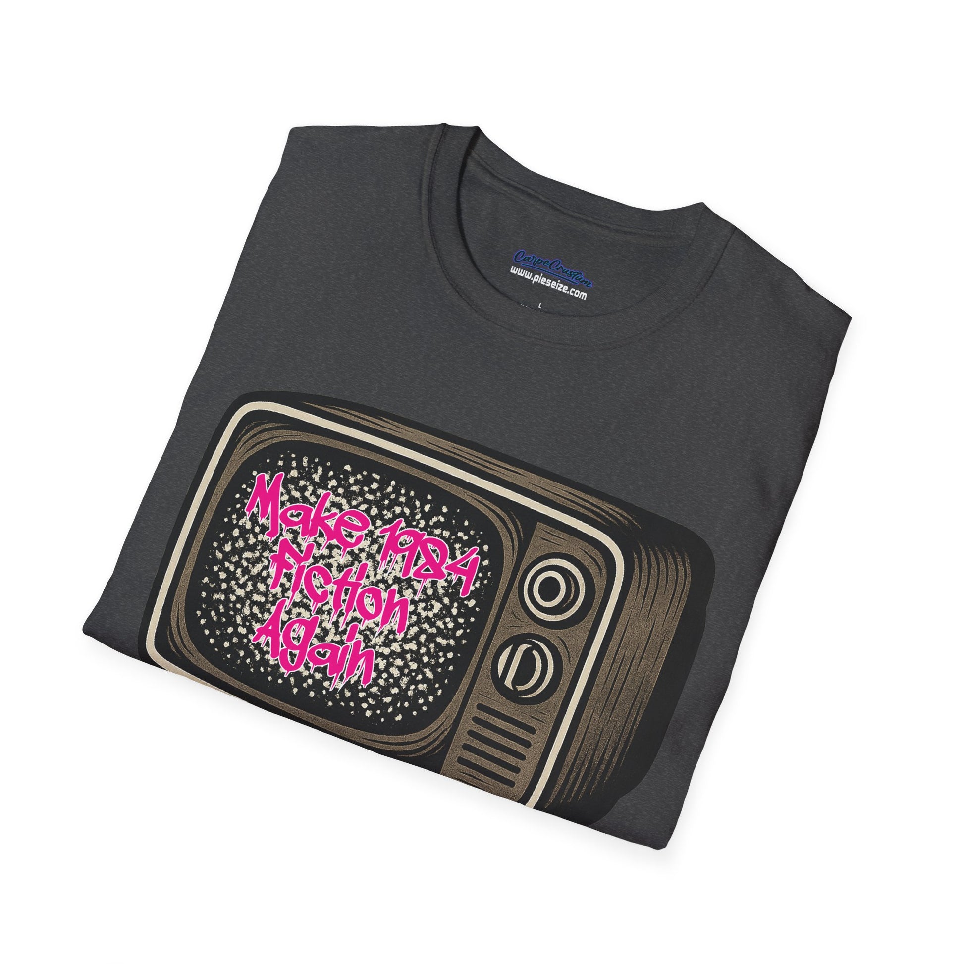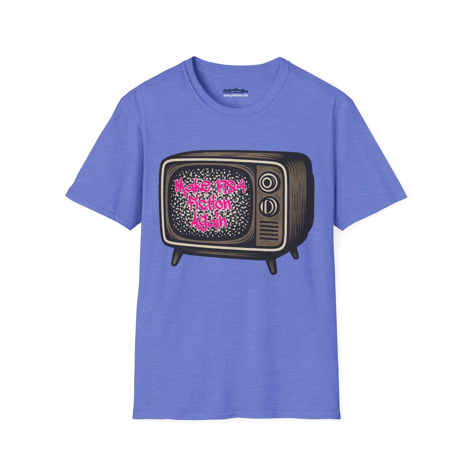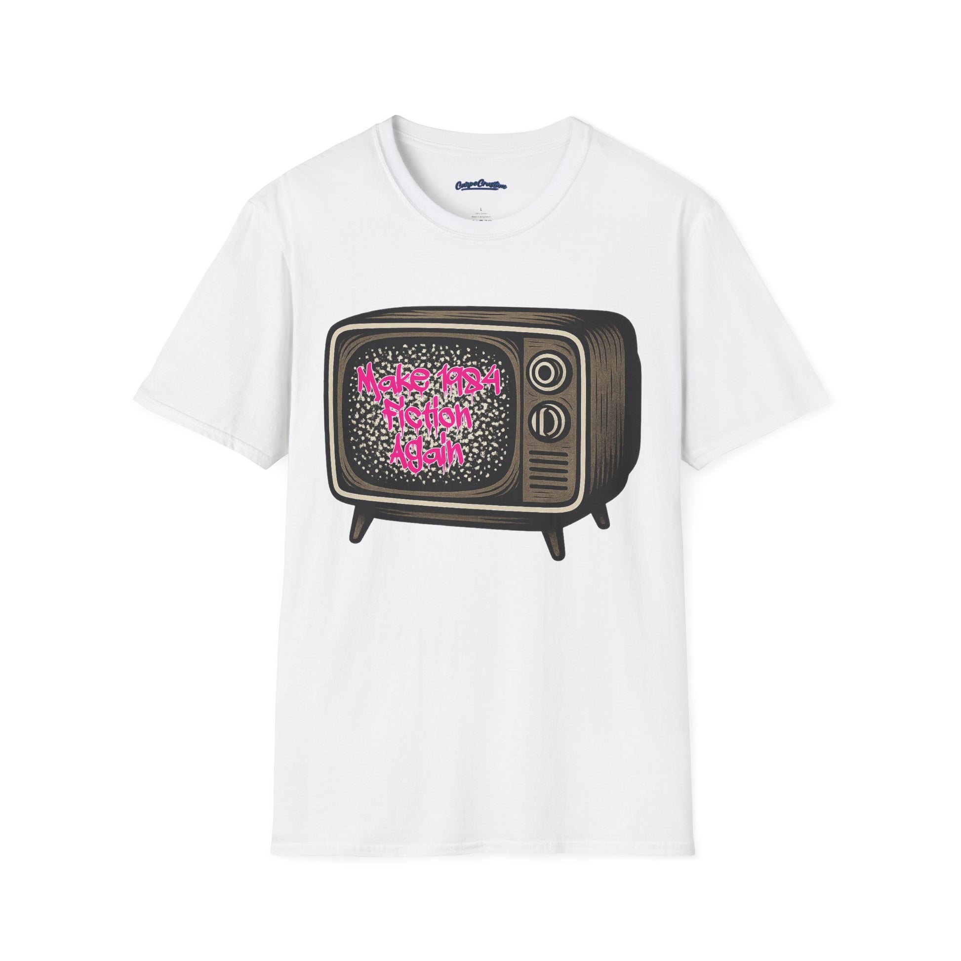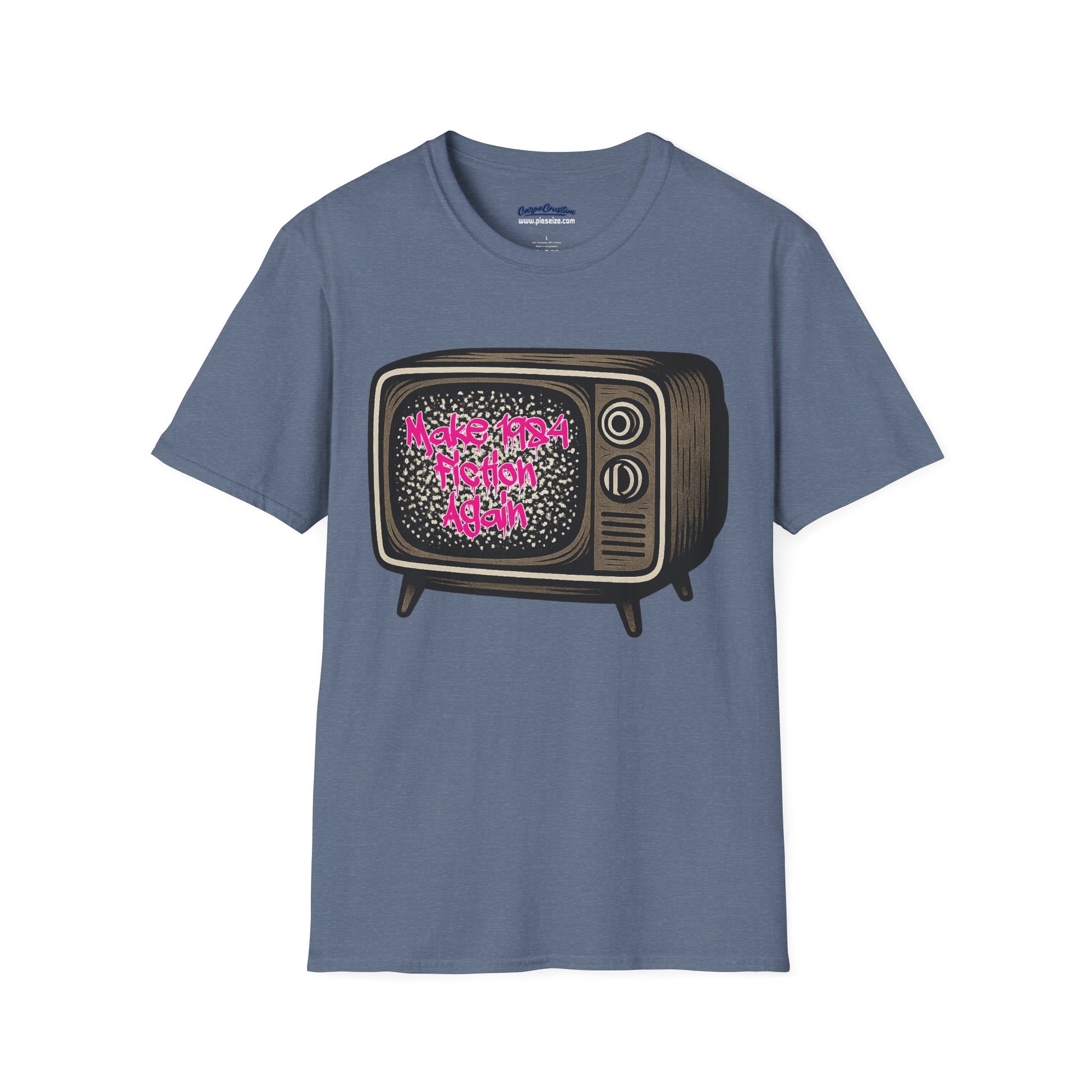 Make 1984 Fiction Again T-Shirt β Funny Dystopian Vintage TV Tee β Orwellian Satire Shirt β Political Parody Gift β Retro Graphic Tee
