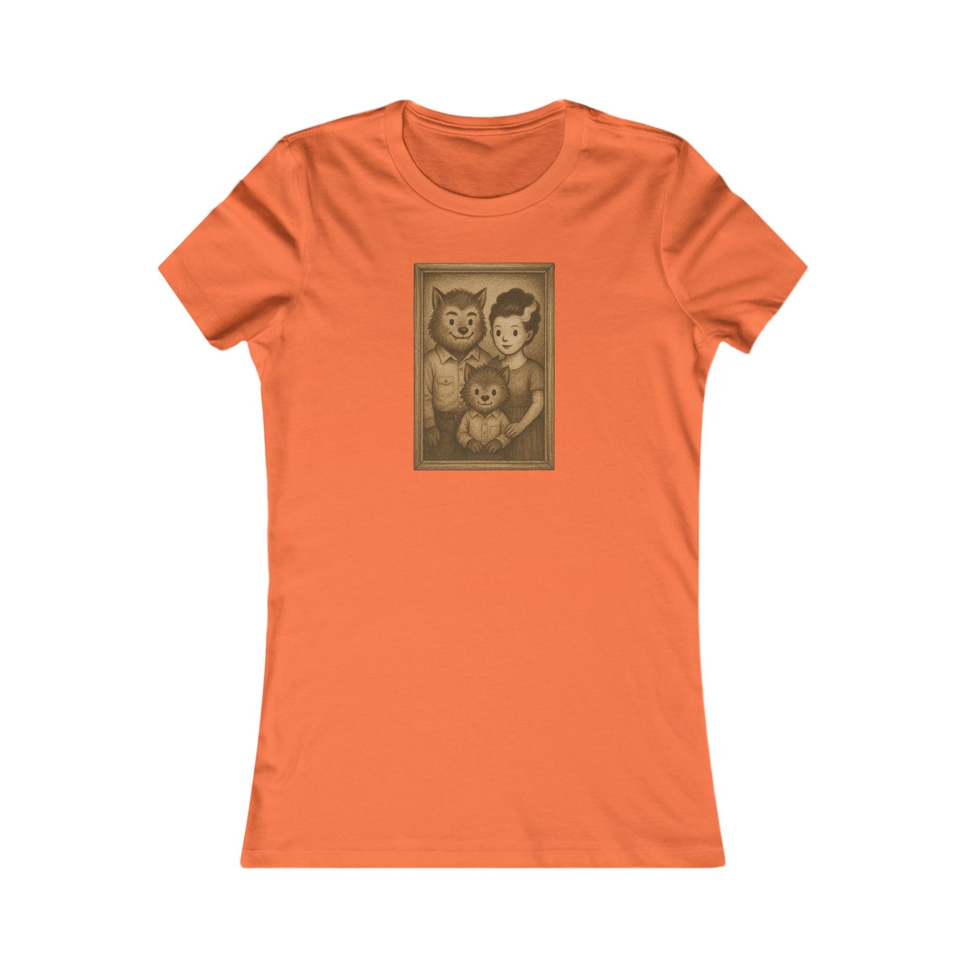 Printed on a comfy, flattering women's cut shirt, this retro-style design features a sepia-toned werewolf family portrait that feels like it came straight out of Grandma's haunted attic. Whether you're howling at the moon, dodging silver bullets, or just sipping cider at a Halloween party, this shirt brings the charm and the chills.